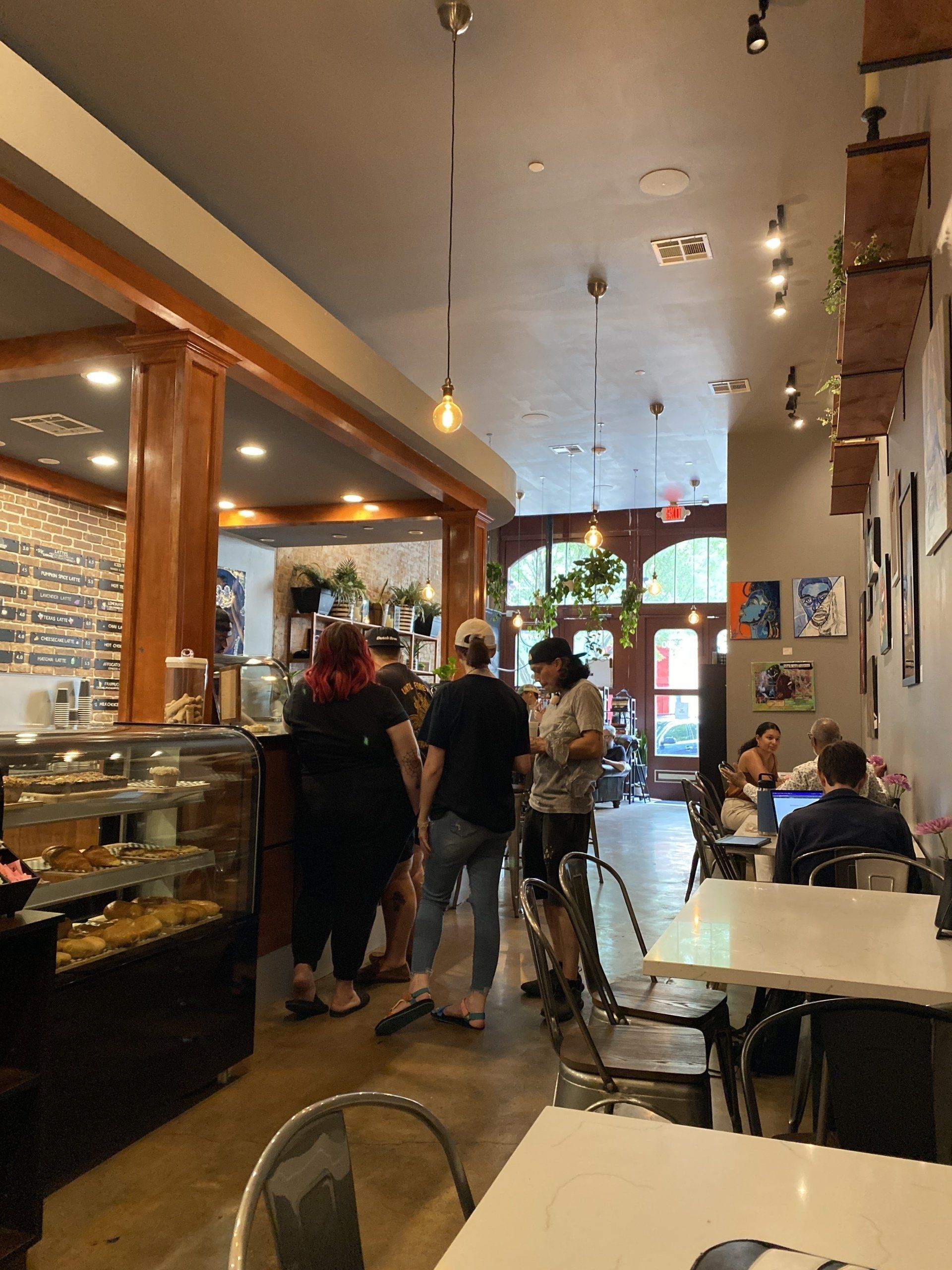 The bar takes up more than a quarter of the store, serving beer, wine, and the staple coffee products. Food items include classic baked goods such as kolaches, cookies, and quiches. The coffee quality is fairly average, enough to cease your coffee craving. My experience with the warm oatmeal raisin cookie was also average, a solid 6 out of 10.